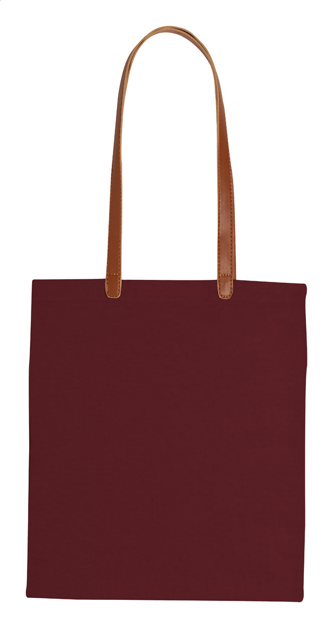 Cotton shopping bag with long PU leather handles. 100% cotton, 200 g/m².