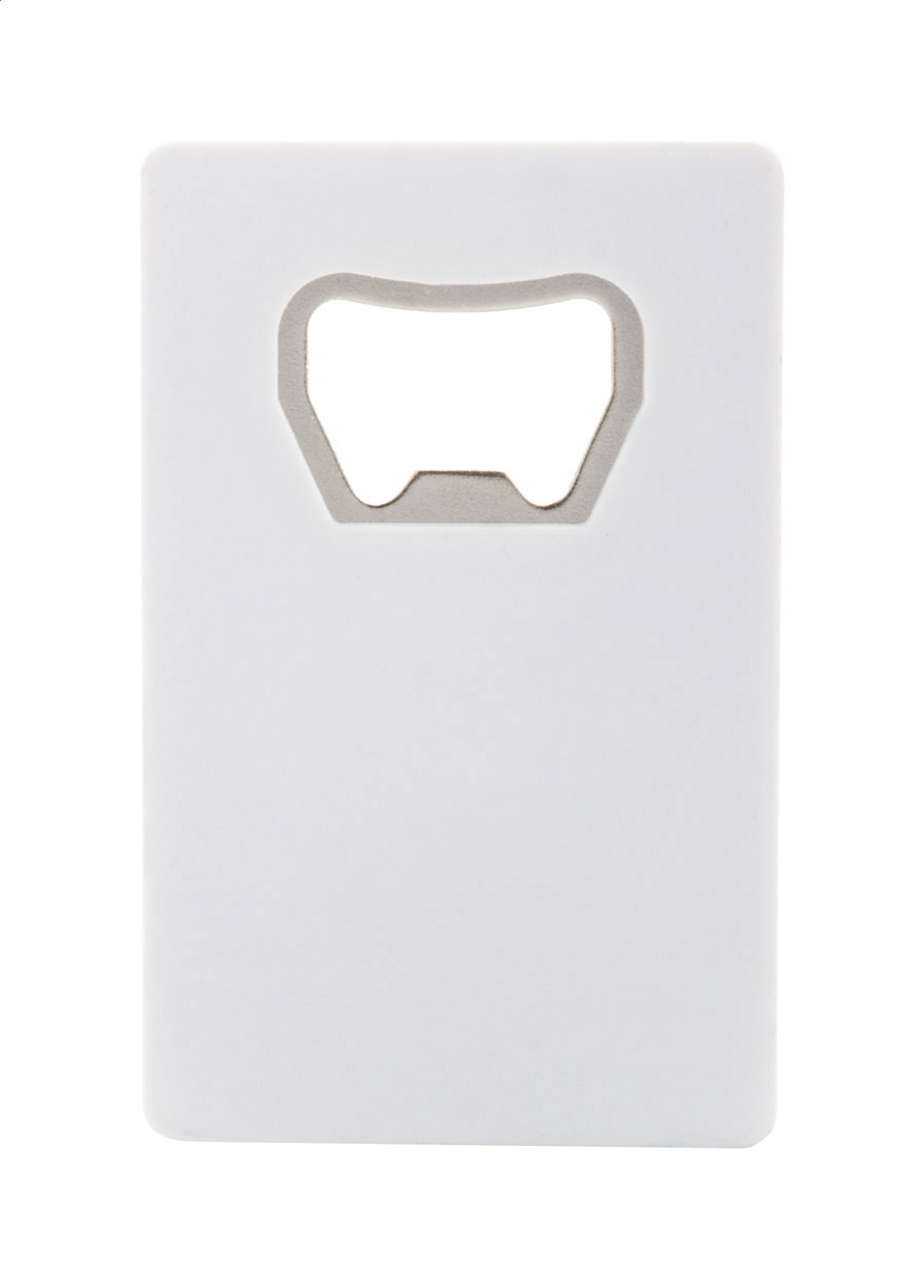 Rectangular, plastic bottle opener.