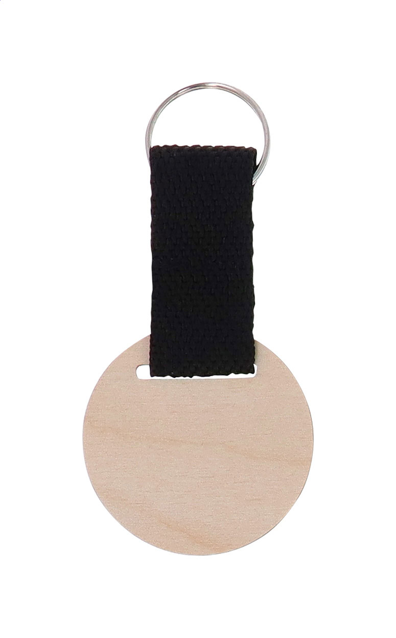 Birch plywood keyring with polyester strap and full colour printing. Price includes UV LED printing on one side. MOQ: 200 pcs.