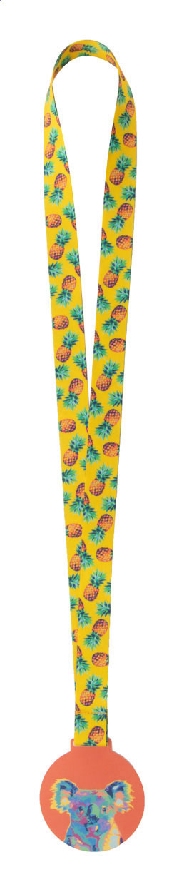 Custom made, acrylic medal with full colour graphics. On sublimation printed RPET lanyard. Price includes sublimation and UV LED printing. MOQ: 100 pcs.
